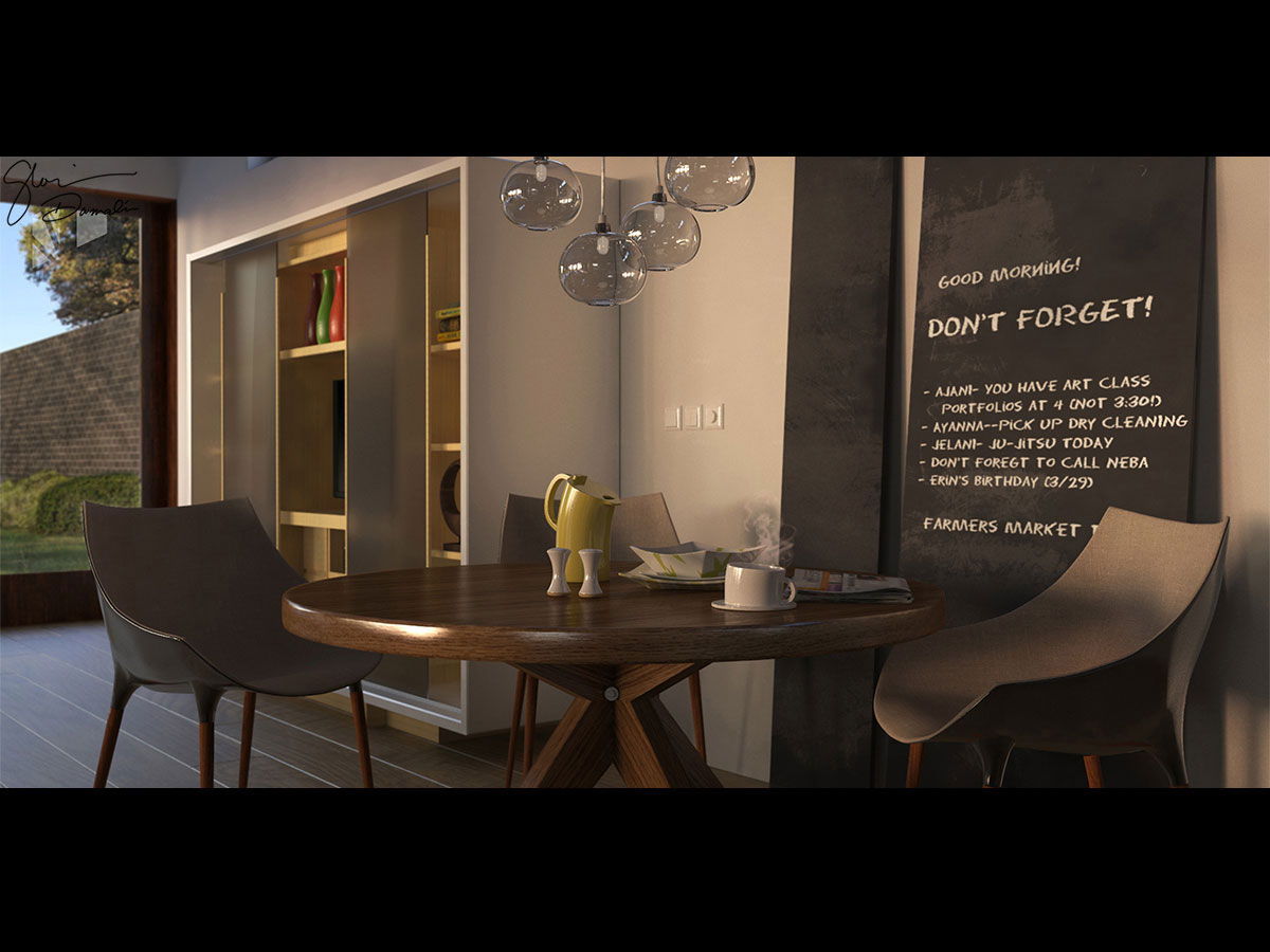 The first 3ds Max course I took provided a general overview of the tools and features. We didn't spend a lot of time creating our own materials or lighting setups. This was the first scene I rendered outside of class. My focus here was to practice poly-modeling techniques for all the furniture, create more realistic lighting and materials, and also get a better handle on the modifiers available in 3ds Max.